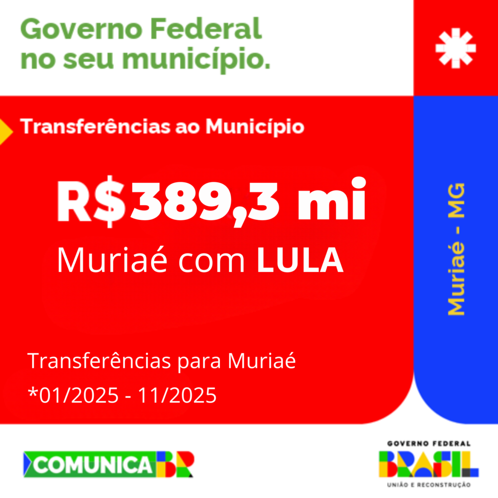 Com esse aporte financeiro, Muriaé tem a oportunidade de ampliar e modernizar seus serviços públicos, garantir mais inclusão social e impulsionar o desenvolvimento local com responsabilidade.
